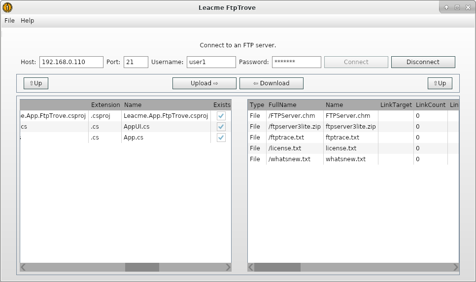Leacme FtpTrove - This application features the ability to download and upload files from an FTP server.