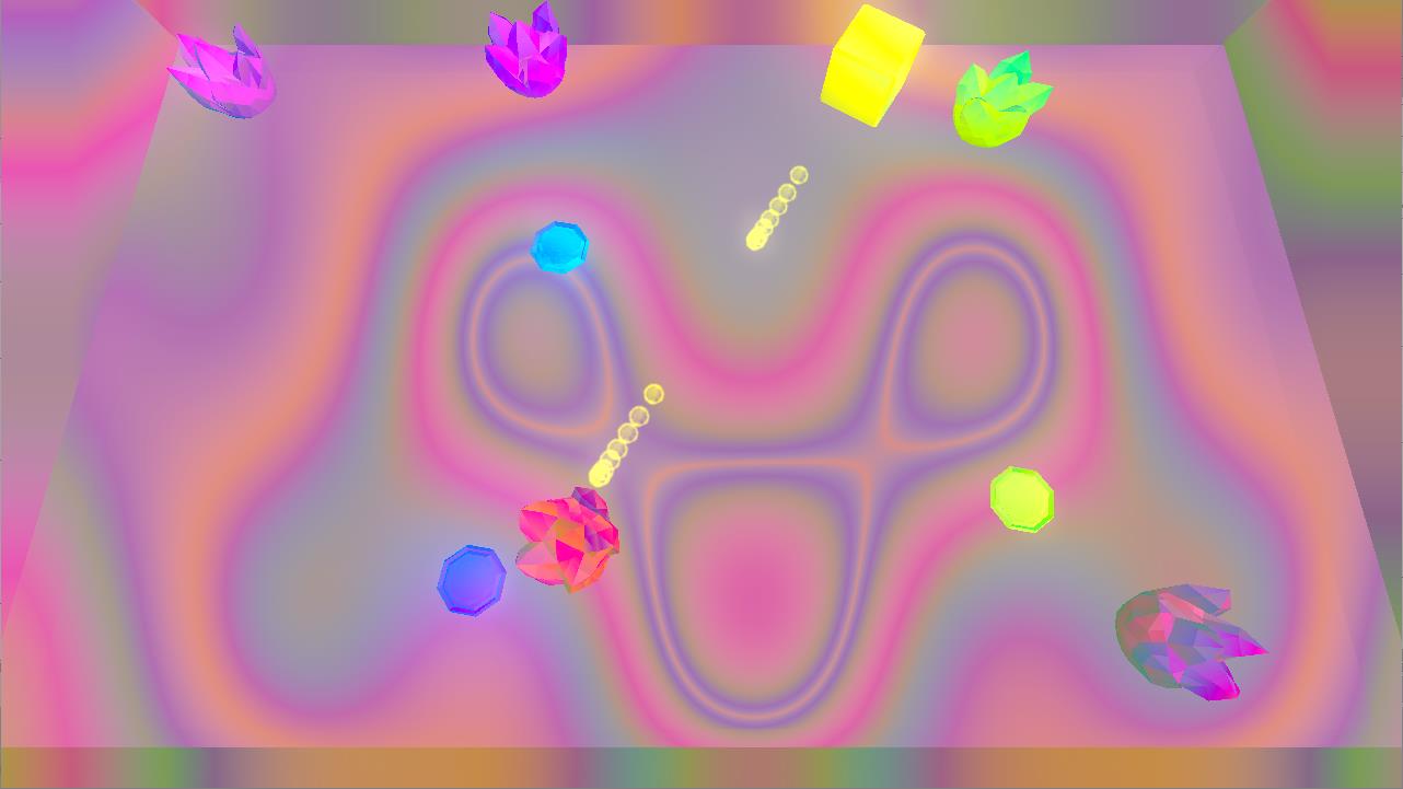 L-Isolaconate - An infinite adventure of keeping yourself alive by subsisting on color. Use directional keys to get close to other geomes before completely fading.