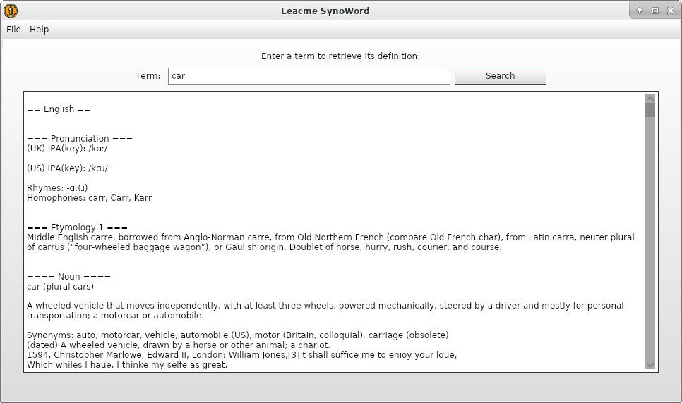 Leacme SynoWord - This application features the ability to define a specified term by profiving its word definition and related info.