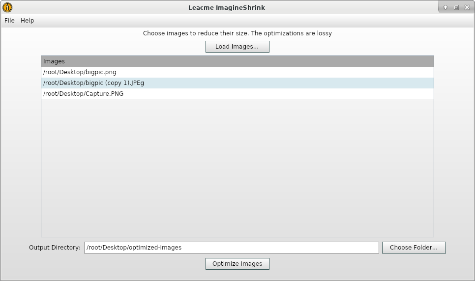 Leacme ImagineShrink - This application features the ability to bulk reduce the size of .PNG and .JPEG images through lossy compression algorithms.