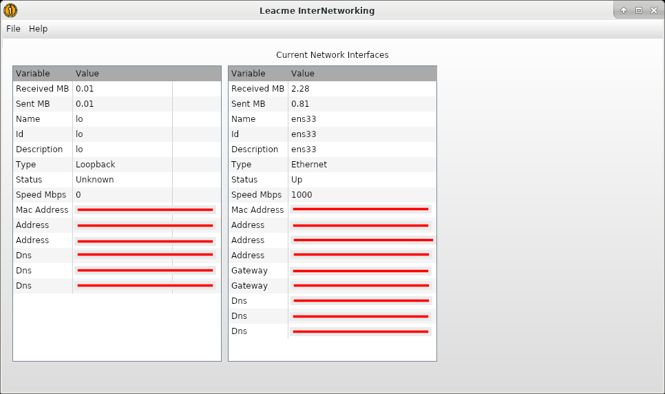Leacme InterNetworking - This application features the ability to provide information about the network interfaces the current computer contains, including details such as name, speed, IP addresses, etc.