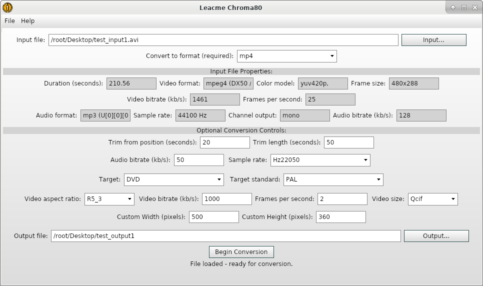 Leacme Chroma80 - This application features the ability to use the embedded FFmpeg binaries to convert media files to various formats.