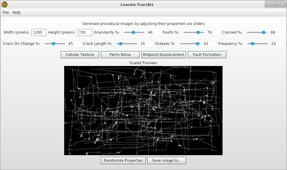 Leacme FractArt - This application features the ability to allows generation of procedural art with the ability to edit the generation parameters as well as exporting the images.