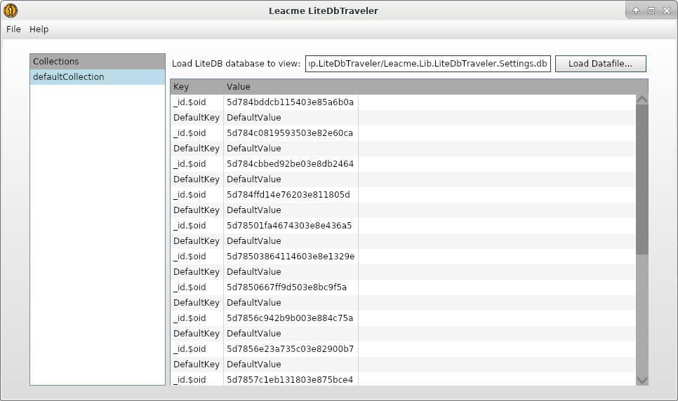 Leacme LiteDbTraveler - This application features the ability to view the contents of a LiteDB database including the documents belonding to collections.