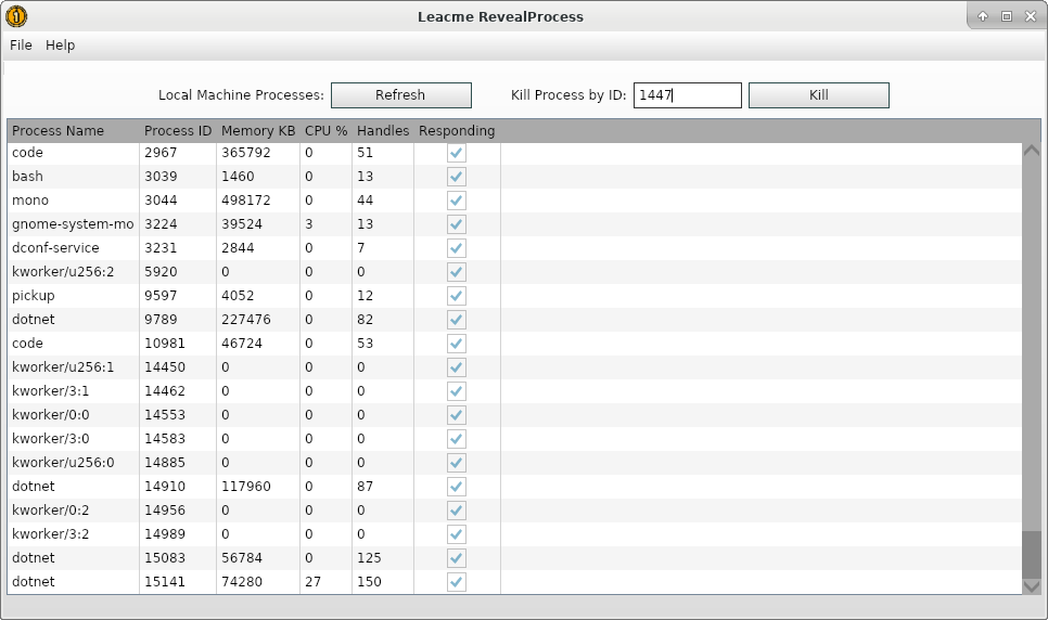 Leacme RevealProcess - This application features the ability to monitor and kill processes currently running on local machine.