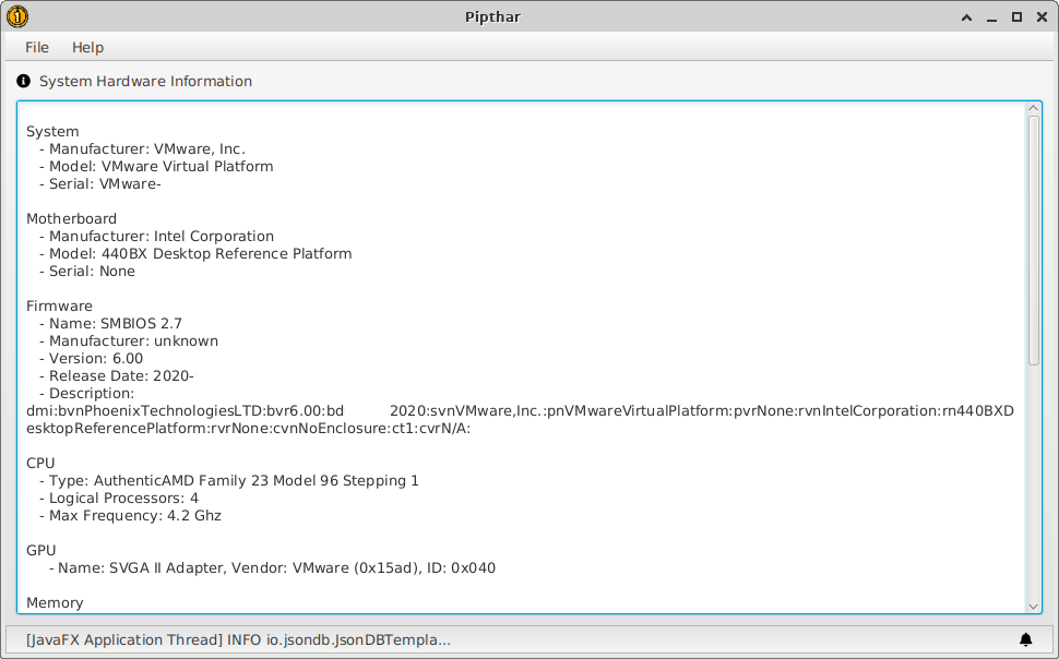 Pipthar - Displays your system's hardware information