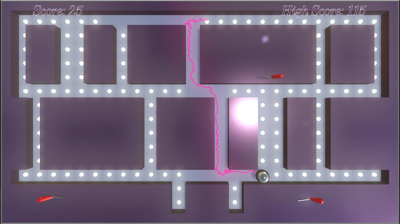 L-Ecalityde - Collect the glowing spheres in the level by controlling the orb with arrow keys, but don't let the scissors cut the rope!