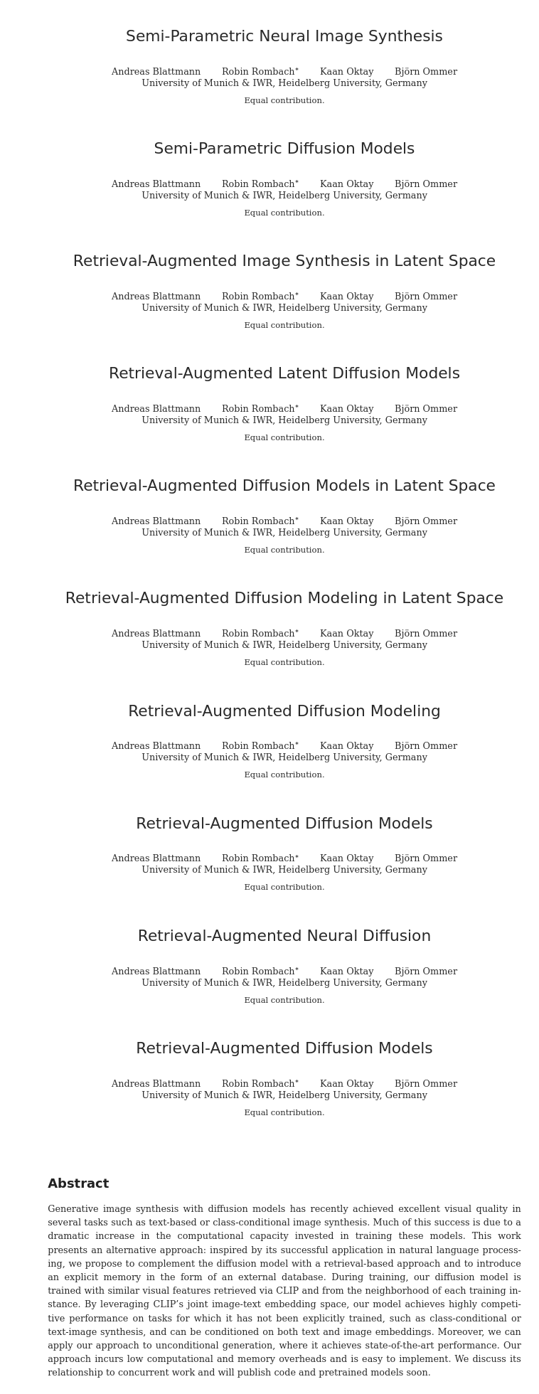 \title{Retrieval-Augmented Diffusion Models}LaTeXML should only use the last defined title.