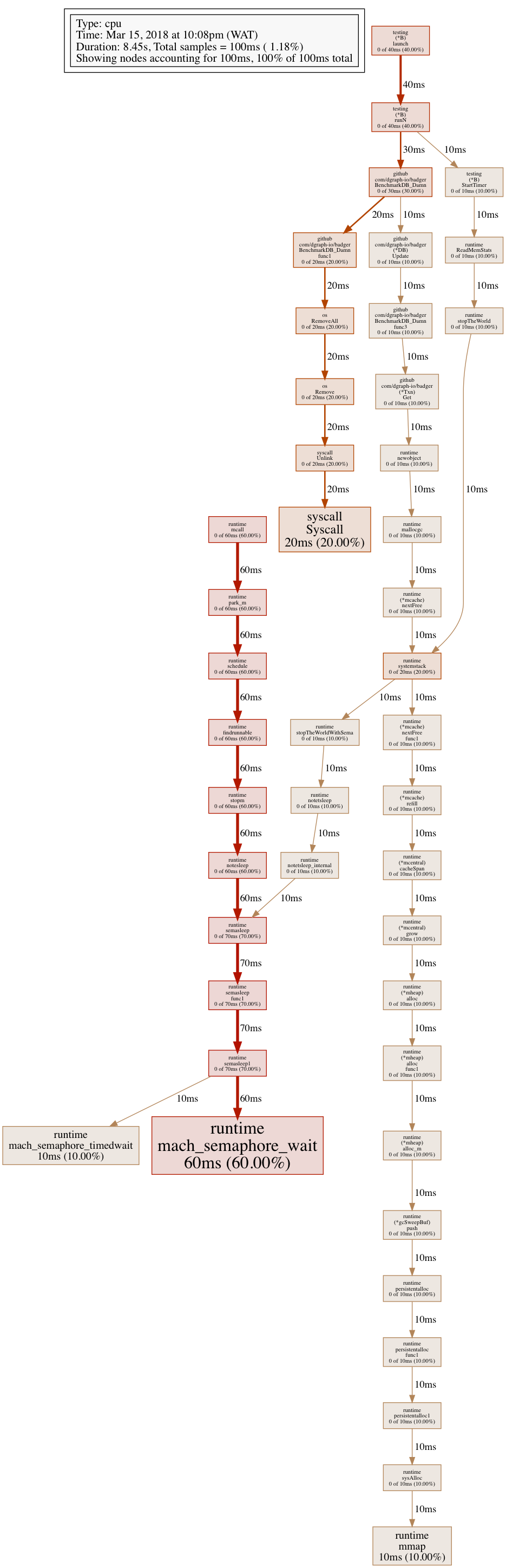 0 0% 0% 2.81s 79.60% github.com/dgraph-io/badger.BenchmarkDB_Damn