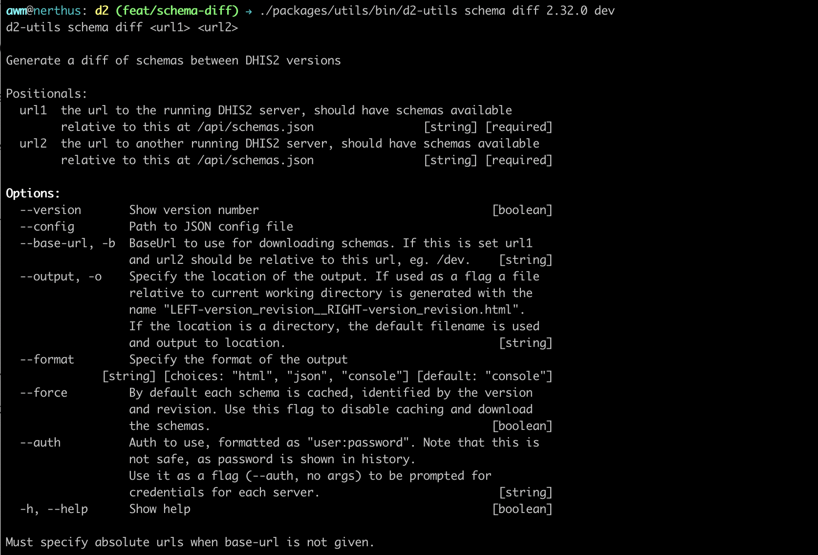 at Object.run [as handler] (/Users/awm/dev/dhis2/cli/d2/packages/utils/src/cmds/schema/diff/index.js:188:31)
