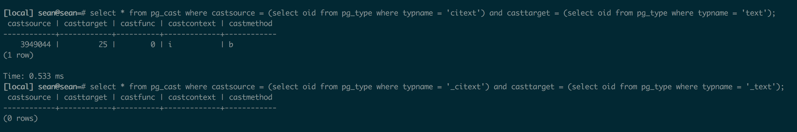 Also need to check if the right coersions exist and that codegen will place nice with citext[]