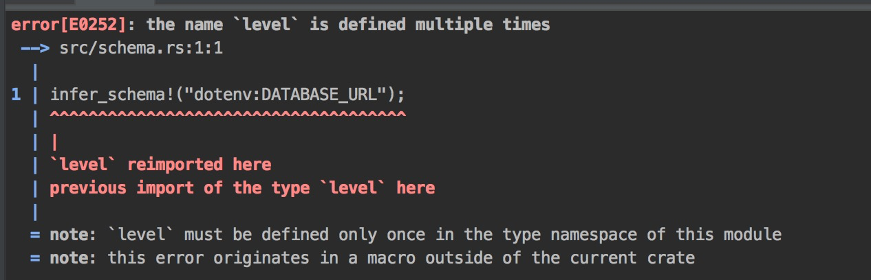 Yeah you can't have a column with the same name as the table. You can rename the column by putting a |