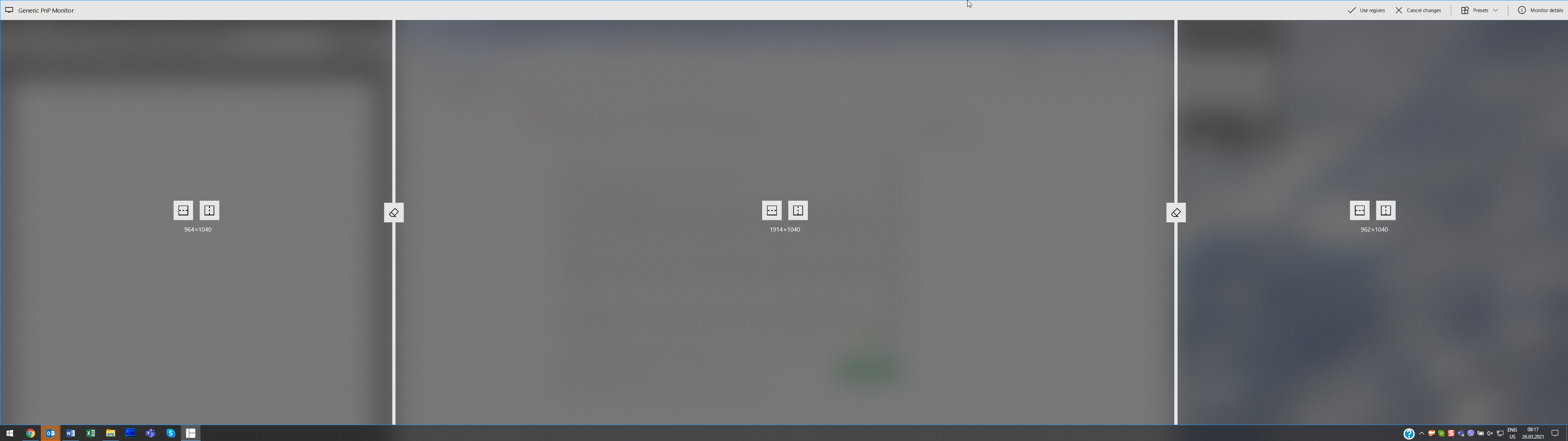 After that, the vertical resolution of the region is changed automatically the way that the taskbar is included in the region area. As a result, when a window is maximised in any of the splits, the bottom part of the window is not visible being hidden behind the taskbar.