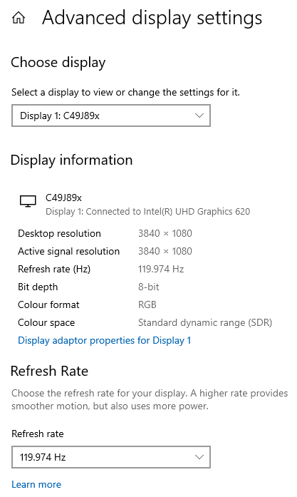 I am mostly using the notebook at work connected to a docking station and an extra-wide monitor (Samsung C49J89x). The monitor has a resolution of 3840x1080. The MaxTo is configured to use the standard "Ultra-wide three-way" region setup.