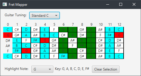 User can now click to highlight notes that will move when the tuning of the fretboard is changed