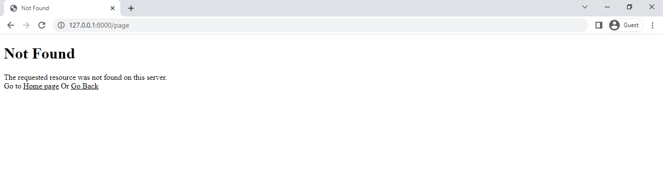The Django Standard Not Found (404) page which appears when Debug = False says only that The resource was not found on the server. It doesn't give the option to the user to visit the homepage of the website or to revert back in the history like most standard websites do.