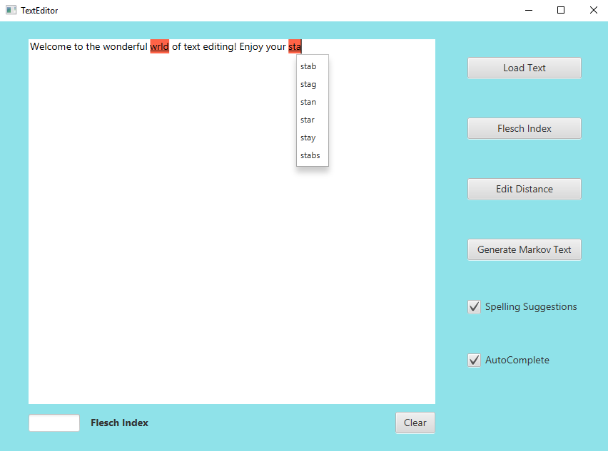 A TextEditor written in Java for a Coursera OOP course.
