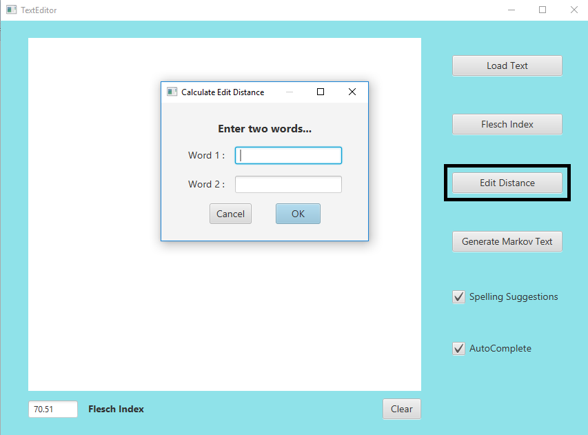 Finally the editor has a fun bonus option called "Edit Distance", which accepts two