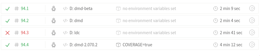 Hmm, if I set the log-level to debug, the errors goes away: Also this patch moves the error to the next test: diff --git a/test/utils.d b/test/utils.d