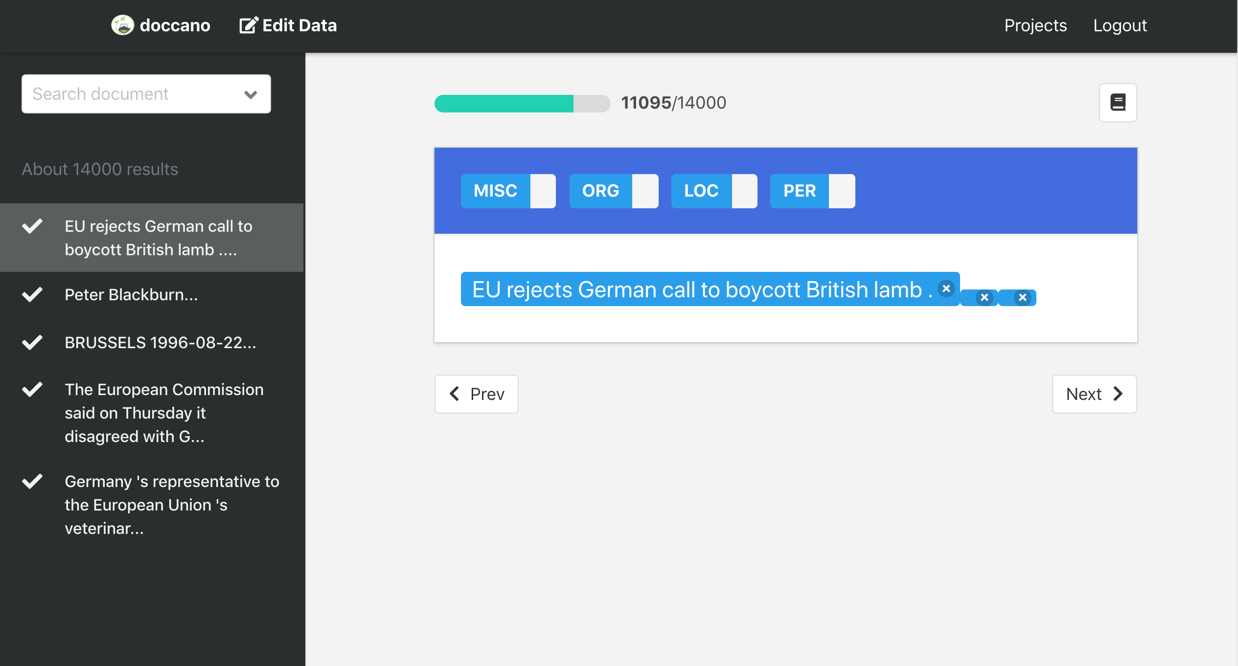 The Pug approach demonstrated in this pull request can also be extended to the admin pages in Doccano, for example to replace the Django template inheritance on the upload and download screens, but I haven't tackled this yet.
