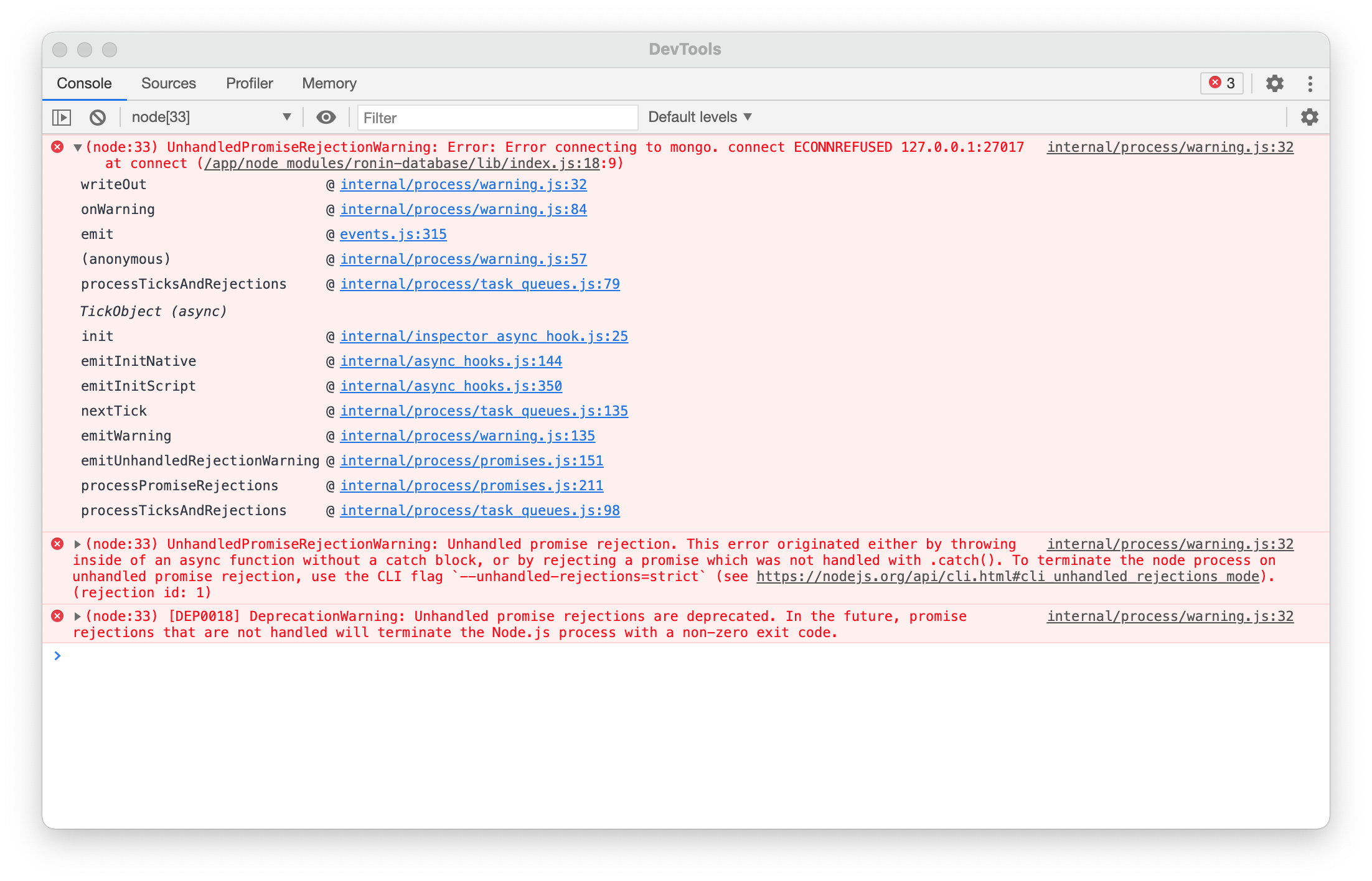 Hi I was following your tutorial and after the docker-compose file built , I got an "ECONNREFUSED 127.0.0.1:27017" message on the debug window of google chrome.
