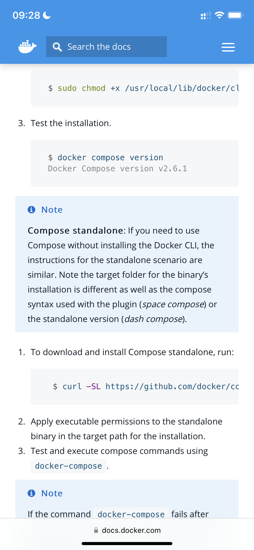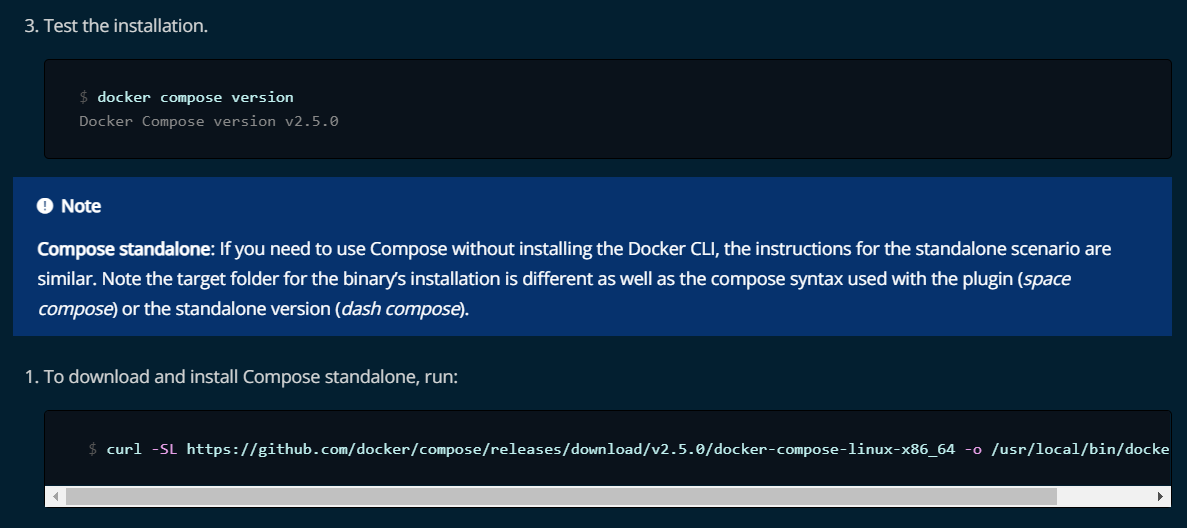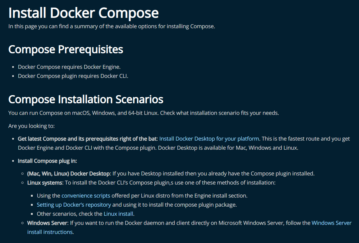 I'm just a user of the documentation, I have written documentation that refers to this documentation. Previously I could just refer to the Compose installation page and say "follow the instructions", that's not possible anymore. I'm not sure how I can help, but I really think this PR was merged when it shouldn't have been. |