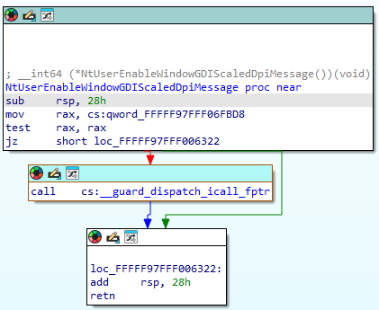 your hooked function. This pointer was either retrieved by pattern (qword_FFFFF97FFF06FBD8) or by offset 0x6FBD8 from win32k.sys. After retrieving the pointer
