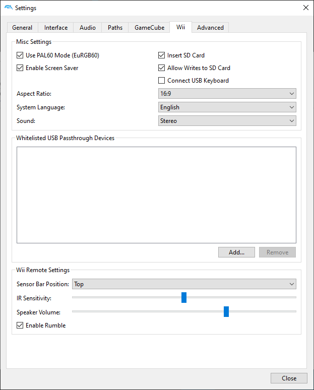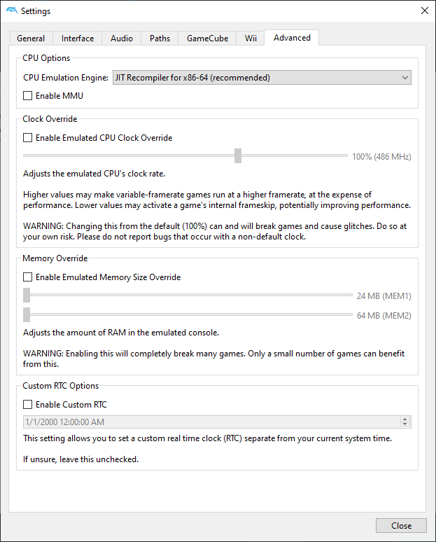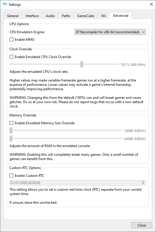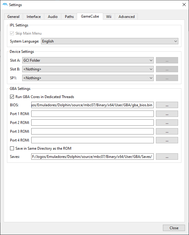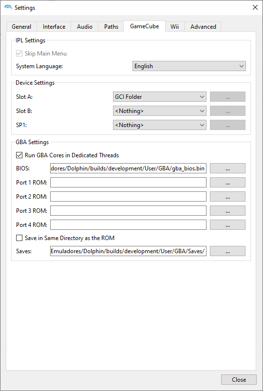 Reworded the Skip Main Menu tooltip from "Put Main Menu roms in User/GC/{region}." to "Put IPL ROMs in User/GC/<region>." (not shown in the screenshot)