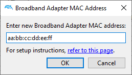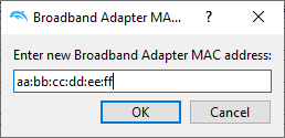 Broadband Adapter settings dialog