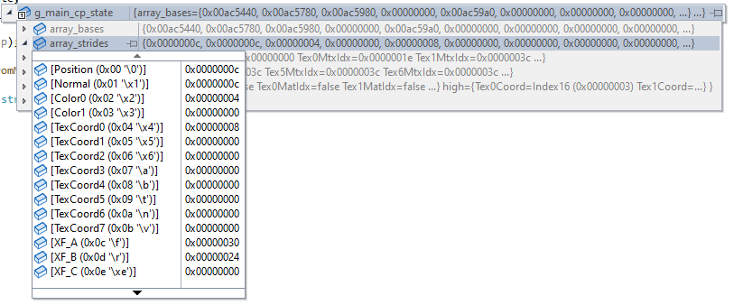 BitFieldTest:TEST(BitField, Storage) ?object {hex=0 full_u64=0 full_s64=0 ...} hex: 0 full_u64: 0 full_s64: 0 regular_field_unsigned: 0 regular_field_unsigned2: 0 regular_field_signed: 0 at_dword_boundary: 0 - signed_1bit: false + signed_1bit: 0 flag: false - enum_1: 0 - enum_2: 0 + enum_1: A (0) + enum_2: A (0) ?object {hex=18446744073709551615 full_u64=18446744073709551615 full_s64=-1 ...} hex: 18446744073709551615 full_u64: 18446744073709551615 full_s64: -1 regular_field_unsigned: 7 regular_field_unsigned2: 7 regular_field_signed: 7 at_dword_boundary: 15 - signed_1bit: true - flag: false - enum_1: 3 - enum_2: 3 + signed_1bit: 1 + flag: true + enum_1: D (3) + enum_2: D (3) ?object {hex=9223372036854775807 full_u64=9223372036854775807 full_s64=9223372036854775807 ...} hex: 9223372036854775807 full_u64: 9223372036854775807 full_s64: 9223372036854775807 regular_field_unsigned: 7 regular_field_unsigned2: 7 regular_field_signed: 7 at_dword_boundary: 15 - signed_1bit: true + signed_1bit: 1 flag: false - enum_1: 3 - enum_2: 3 + enum_1: D (3) + enum_2: D (3) ?object {hex=9223372036854775808 full_u64=9223372036854775808 full_s64=-9223372036854775808 ...} hex: 9223372036854775808 full_u64: 9223372036854775808 full_s64: -9223372036854775808 regular_field_unsigned: 0 regular_field_unsigned2: 0 regular_field_signed: 0 at_dword_boundary: 0 - signed_1bit: false - flag: false - enum_1: 0 - enum_2: 0 + signed_1bit: 0 + flag: true + enum_1: A (0) + enum_2: A (0) ?object {hex=9223372036854775880 full_u64=9223372036854775880 full_s64=-9223372036854775736 ...} hex: 9223372036854775880 full_u64: 9223372036854775880 full_s64: -9223372036854775736 regular_field_unsigned: 0 regular_field_unsigned2: 0 regular_field_signed: 0 at_dword_boundary: 0 - signed_1bit: false - flag: false - enum_1: 0 - enum_2: 0 + signed_1bit: 0 + flag: true + enum_1: A (0) + enum_2: A (0) ?object {hex=1115638279670828351 full_u64=1115638279670828351 full_s64=1115638279670828351 ...} hex: 1115638279670828351 full_u64: 1115638279670828351 full_s64: 1115638279670828351 regular_field_unsigned: 6 regular_field_unsigned2: 6 regular_field_signed: 6 at_dword_boundary: 10 - signed_1bit: true + signed_1bit: 1 flag: false - enum_1: 3 - enum_2: 3 + enum_1: D (3) + enum_2: D (3) ?object {hex=12157589738054409517 full_u64=12157589738054409517 full_s64=-6289154335655142099 ...} hex: 12157589738054409517 full_u64: 12157589738054409517 full_s64: -6289154335655142099 regular_field_unsigned: 6 regular_field_unsigned2: 6 regular_field_signed: 6 at_dword_boundary: 15 - signed_1bit: true - flag: false - enum_1: 2 - enum_2: 0 + signed_1bit: 1 + flag: true + enum_1: C (2) + enum_2: A (0) ?object {hex=1952210759788999965 full_u64=1952210759788999965 full_s64=1952210759788999965 ...} hex: 1952210759788999965 full_u64: 1952210759788999965 full_s64: 1952210759788999965 regular_field_unsigned: 2 regular_field_unsigned2: 2 regular_field_signed: 2 at_dword_boundary: 14 - signed_1bit: false + signed_1bit: 0 flag: false - enum_1: 3 - enum_2: 3 + enum_1: D (3) + enum_2: D (3) ?object {hex=16372065037784856923 full_u64=16372065037784856923 full_s64=-2074679035924694693 ...} hex: 16372065037784856923 full_u64: 16372065037784856923 full_s64: -2074679035924694693 regular_field_unsigned: 4 regular_field_unsigned2: 4 regular_field_signed: 4 at_dword_boundary: 2 - signed_1bit: false - flag: false - enum_1: 2 - enum_2: 1 + signed_1bit: 0 + flag: true + enum_1: C (2) + enum_2: B (1) TEST(BitFieldArray, Unsigned) ?object {hex=0 a=0 b=0 ...} hex: 0 a: 0 b: 0 c: 0 - arr: {storage=0 } + arr: {[0]=0 [1]=0 [2]=0 ...} ?object {hex=2 a=2 b=0 ...} hex: 2 a: 2 b: 0 c: 0 - arr: {storage=2 } + arr: {[0]=2 [1]=0 [2]=0 ...} ?object {hex=14 a=2 b=3 ...} hex: 14 a: 2 b: 3 c: 0 - arr: {storage=14 } + arr: {[0]=2 [1]=3 [2]=0 ...} ?object {hex=62 a=2 b=3 ...} hex: 62 a: 2 b: 3 c: 3 - arr: {storage=62 } + arr: {[0]=2 [1]=3 [2]=3 ...} ?object {hex=58 a=2 b=2 ...} hex: 58 a: 2 b: 2 c: 3 - arr: {storage=58 } + arr: {[0]=2 [1]=2 [2]=3 ...} ?object {hex=21 a=1 b=1 ...} hex: 21 a: 1 b: 1 c: 1 - arr: {storage=21 } + arr: {[0]=1 [1]=1 [2]=1 ...} ?object {hex=63 a=3 b=3 ...} hex: 63 a: 3 b: 3 c: 3 - arr: {storage=63 } + arr: {[0]=3 [1]=3 [2]=3 ...} ?object {hex=36 a=0 b=1 ...} hex: 36 a: 0 b: 1 c: 2 - arr: {storage=36 } + arr: {[0]=0 [1]=1 [2]=2 ...} TEST(BitFieldArray, Signed) ?object {hex=0 a=0 b=0 ...} hex: 0 a: 0 b: 0 c: 0 - arr: {storage=0 } + arr: {[0]=0 [1]=0 [2]=0 ...} ?object -{hex=64 a=2 b=0 ...} +{hex=64 a=-2 b=0 ...} hex: 64 - a: 2 + a: -2 b: 0 c: 0 - arr: {storage=64 } + arr: {[0]=-2 [1]=0 [2]=0 ...} ?object -{hex=448 a=2 b=3 ...} +{hex=448 a=-2 b=-1 ...} hex: 448 - a: 2 - b: 3 + a: -2 + b: -1 c: 0 - arr: {storage=448 } + arr: {[0]=-2 [1]=-1 [2]=0 ...} ?object -{hex=1984 a=2 b=3 ...} +{hex=1984 a=-2 b=-1 ...} hex: 1984 - a: 2 - b: 3 - c: 3 - arr: {storage=1984 } + a: -2 + b: -1 + c: -1 + arr: {[0]=-2 [1]=-1 [2]=-1 ...} ?object -{hex=1856 a=2 b=2 ...} +{hex=1856 a=-2 b=-2 ...} hex: 1856 - a: 2 - b: 2 - c: 3 - arr: {storage=1856 } + a: -2 + b: -2 + c: -1 + arr: {[0]=-2 [1]=-2 [2]=-1 ...} ?object {hex=672 a=1 b=1 ...} hex: 672 a: 1 b: 1 c: 1 - arr: {storage=672 } + arr: {[0]=1 [1]=1 [2]=1 ...} ?object -{hex=2016 a=3 b=3 ...} +{hex=2016 a=-1 b=-1 ...} hex: 2016 - a: 3 - b: 3 - c: 3 - arr: {storage=2016 } + a: -1 + b: -1 + c: -1 + arr: {[0]=-1 [1]=-1 [2]=-1 ...} ?object {hex=1152 a=0 b=1 ...} hex: 1152 a: 0 b: 1 - c: 2 - arr: {storage=1152 } + c: -2 + arr: {[0]=0 [1]=1 [2]=-2 ...} TEST(BitFieldArray, Enum) ?object -{hex=0 a=0 b=0 ...} +{hex=0 a=A (0) b=A (0) ...} hex: 0 - a: 0 - b: 0 - c: 0 - d: 0 - arr: {storage=0 } + a: A (0) + b: A (0) + c: A (0) + d: A (0) + arr: {[0]=A (0) [1]=A (0) [2]=A (0) ...} ?object -{hex=1073741824 a=1 b=0 ...} +{hex=1073741824 a=B (1) b=A (0) ...} hex: 1073741824 - a: 1 - b: 0 - c: 0 - d: 0 - arr: {storage=1073741824 } + a: B (1) + b: A (0) + c: A (0) + d: A (0) + arr: {[0]=B (1) [1]=A (0) [2]=A (0) ...} ?object -{hex=9663676416 a=1 b=2 ...} +{hex=9663676416 a=B (1) b=