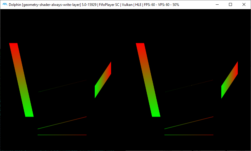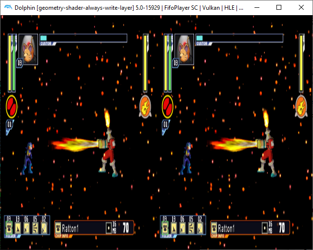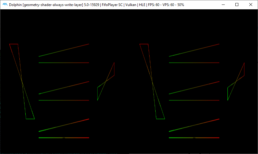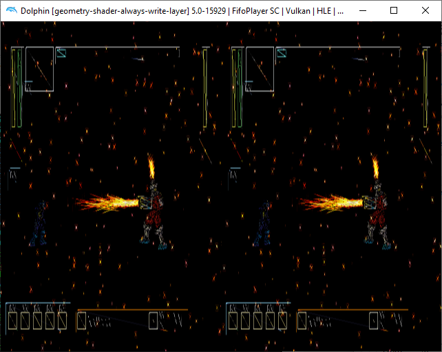 EmitVertex()the value of all 'out' variables (includinggl_Layerandps) becomes undefined. On OpenGL it seems like they were unchanged, but on Vulkan they became 0, resulting in bad rendering. Note that this isn't exactly true; for the fire man stage the old behavior resulted in flickering even when looping the same frame of the fifolog, so there was an additional element of nondeterminism.Fixes https://bugs.dolphin-emu.org/issues/12001.