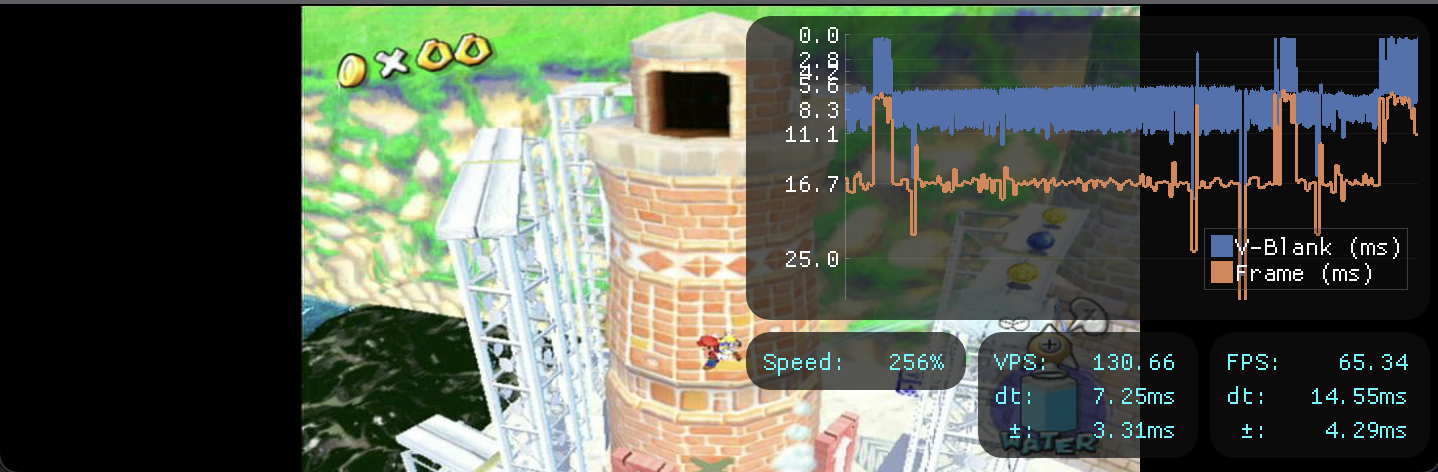 This new frametime system can reveal interesting behavior, such as how Super Mario Sunshine runs at unlimited speed:
