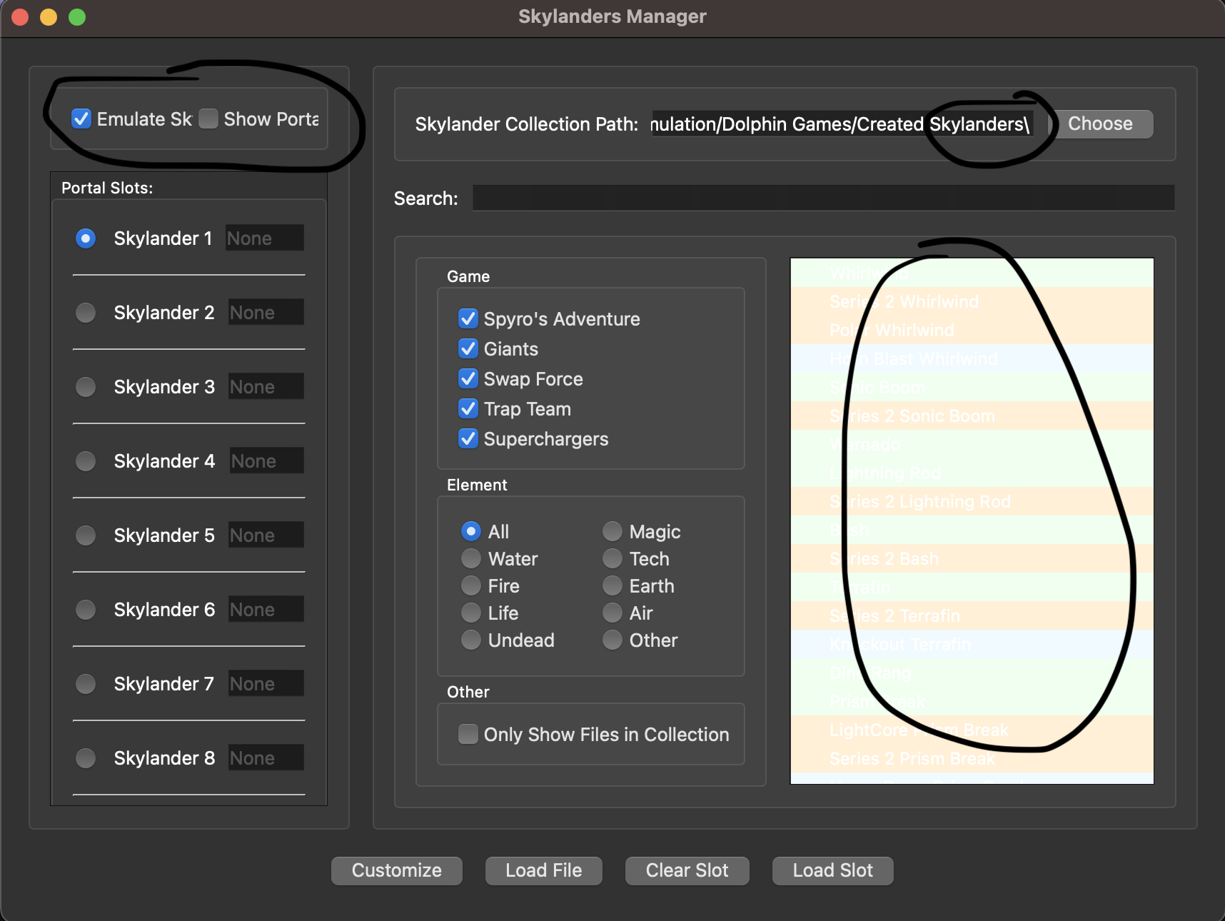 Adds features to improve navigation of Skylanders portal menu, includes: -List of Skylanders and filters for searching -Improved buttons for faster loading options -Added default user folder for storing .sky files
