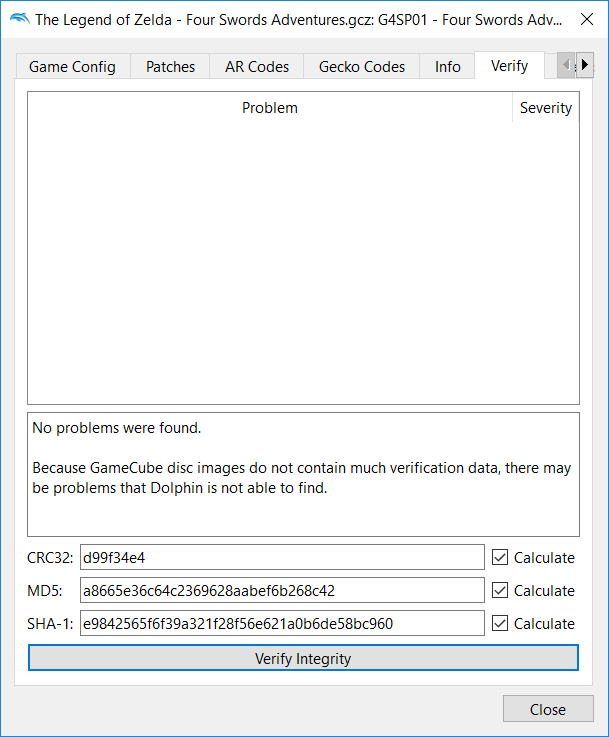 This PR adds a new tab to the game properties window where you can check for problems with your games. Hopefully this can cut down a bit on people who ask about problems that turn out to be caused by bad dumps. For instance, there's a message about not having combined the files that CleanRip produces, and there's a message you get if you've pirated a single-layer version of a game that's supposed to be dual-layer. Some screenshots to show what it looks like:
