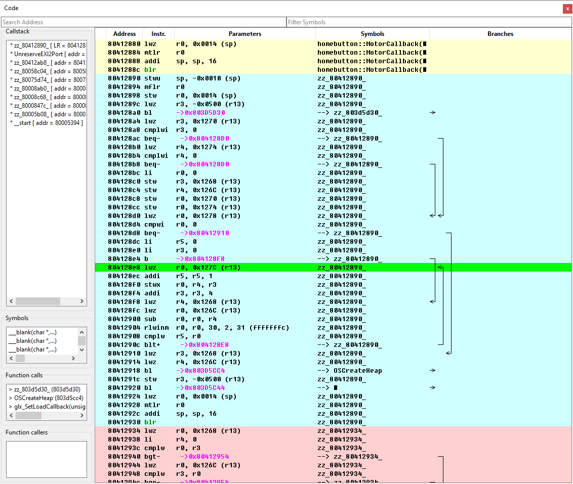 rlwinminstructions. With this they don't, and you can resize them at will.A minor issue is that Qt is pretty awful at eliding strings in table cells, which means if you have a branch target to a long symbol, even if there's enough space for 90% of the symbol name, it will cut off the entire symbol. This kinda sucks but I can't find a way to work around it without completely reimplementing the text painting logic, so I guess I'll live with it.