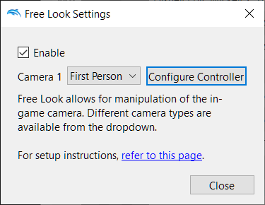 I'd personally like to add a new "background input" setting specifically for FreeLook because while I'd assume users would want it to operate it similarly to the game, they might not. I'd also add an "Input Sources" button like in the main controller window. It's confusing to me if users have to go somewhere else to modify those settings for FreeLook.