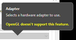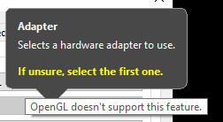 Use a BalloonTip to inform the user when their selected backend (OpenGL or Null) doesn't support adapters, instead of using the default tooltips.