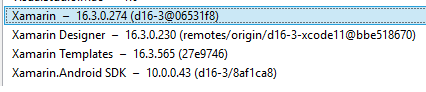 Xamarin.Android Tools: xamarin/xamarin-android-tools/d16-3@cb41333Xamarin.iOS and Xamarin.Mac SDK 13.2.0.42 (5e8a208)