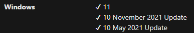 Remove Windows 11 version. (This means including 22H2.)