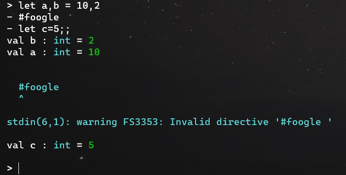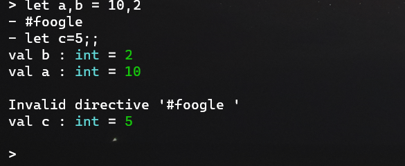 If the #directive is invalid, we just printout a message in white and then move on.