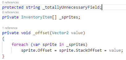 Code Lens are a bit ugly when they're used a lot, which is what OmniSharp does. Wouldn't it be great if they were to be improved?