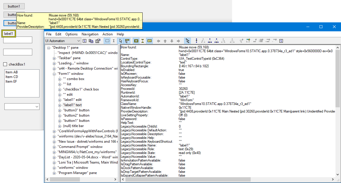 Create WinForms app with Label control and analyze it using Inspect.