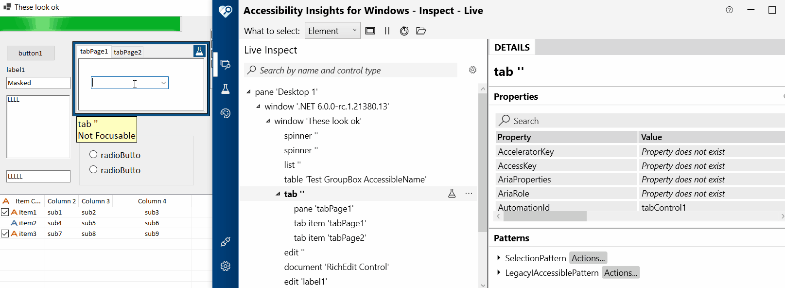 …lity Insights For Windows) keyboard combination Shift+Ctrl+F5/F6/F7/F8/F9 doesn't work with the TabControl dotnet#3058 Updated "SupportsUiaProviders" flag. Added and implemented accessible objects for the TabControl and TabPage Added unit tests. Fixed issue with Narrator