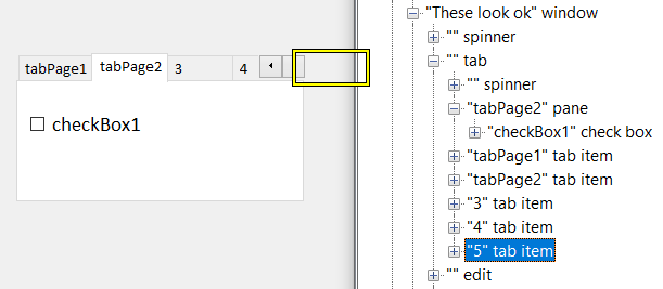 What happens when we hit the spinner control? Suppose we have more tab headers than fits into the control width, then we show a left/right arrows to navigate between the tab headers. Do we hit-test those arrows correctly?