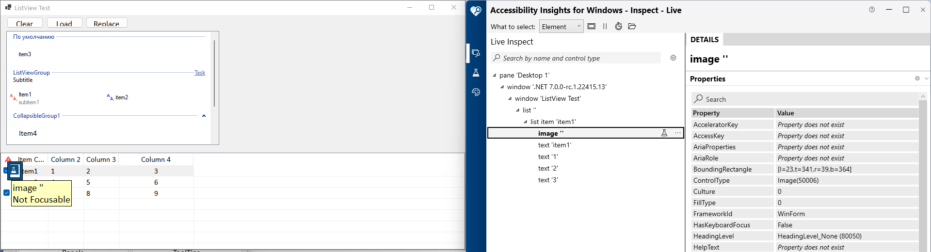 Used AO for image inside ListViewItemImageAccessibleObject Added unit tests