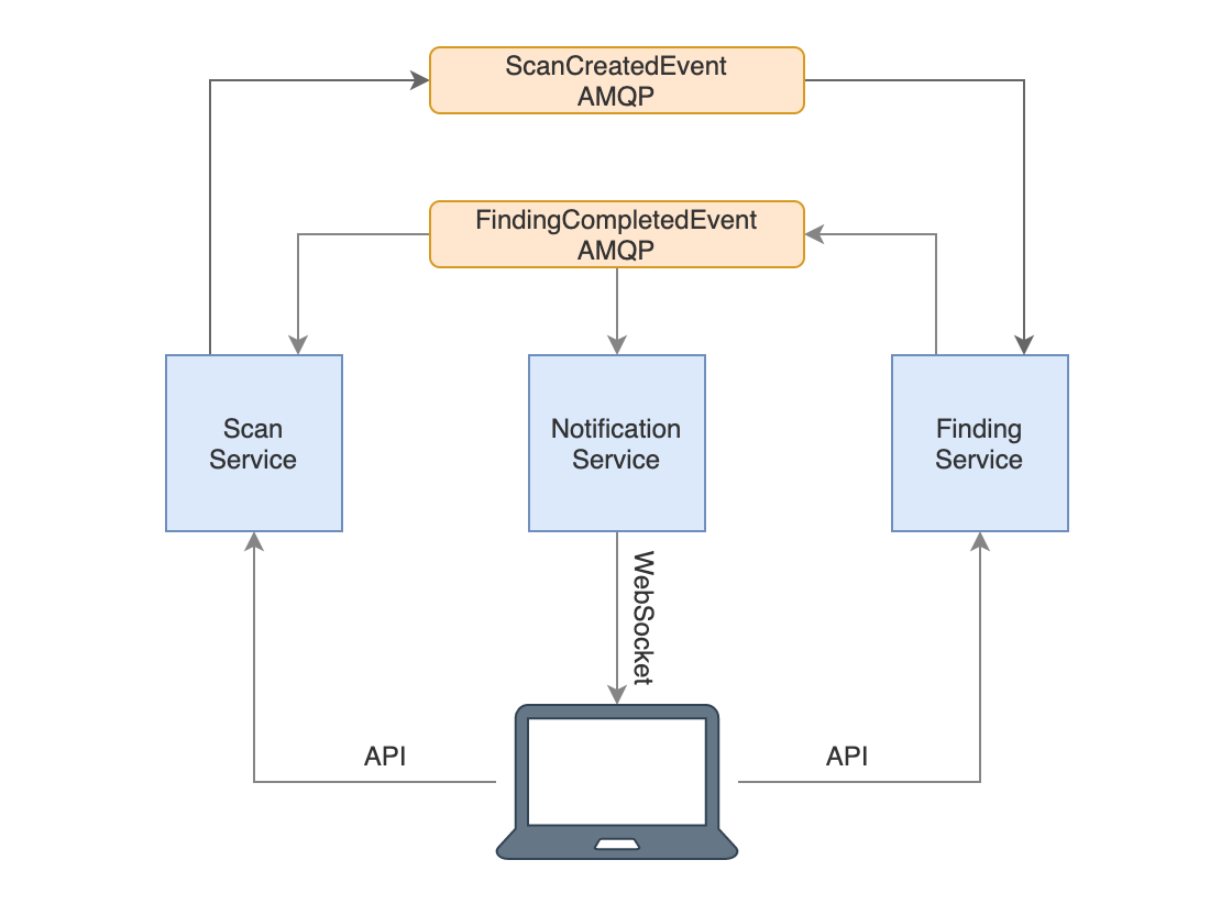 ScanCreatedDomainEventcould be pushed into an AMQP to be consumed by another service (e.g.Findings) - Not implemented: