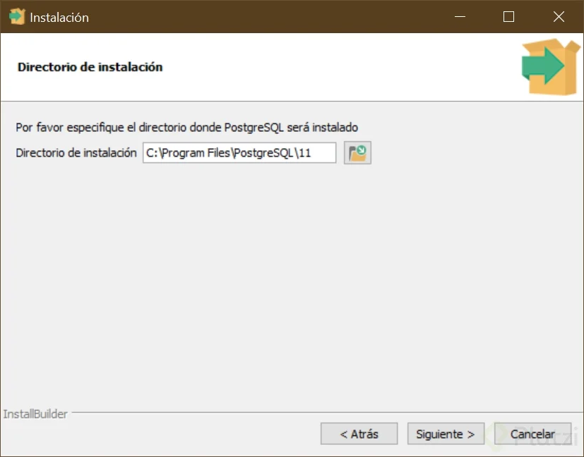 Ahora indicamos la carpeta donde iran guardados los datos de la base de datos, es diferente a la ruta de instalación del Motor de PostgreSQL, pero normalmente será una carpeta de nuestra carpeta de instalación. Puedes cambiar la ruta si quieres tener los datos en otra carpeta.