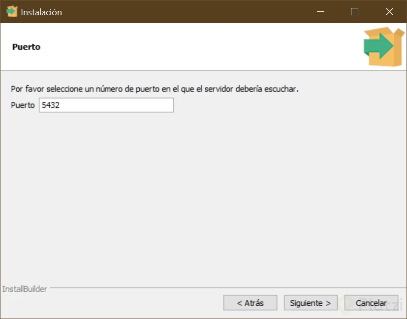 Ahora si queremos cambiar el puerto por donde el servicio de Postgresql estará escuchando peticiones, podemos hacerlo en la siguiente pantalla, si queremos dejar el predeterminado simplemente hacemos clic en siguiente.