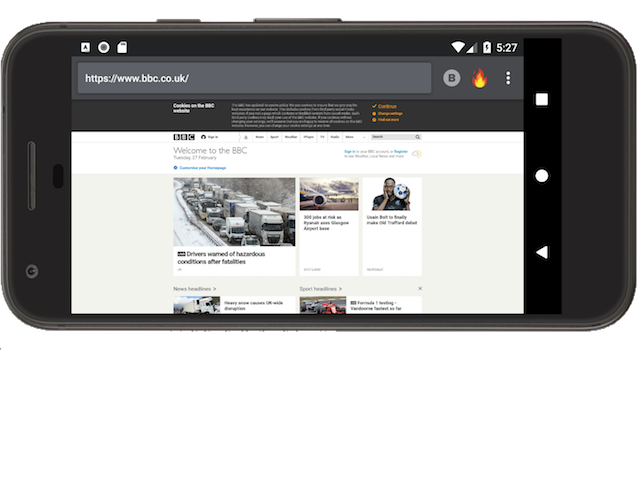 - Tap the checkbox to display a mobile site. The progress bar finishes early and then there is a long delay before the mobile site is displayed which makes it seem like nothing is happening.