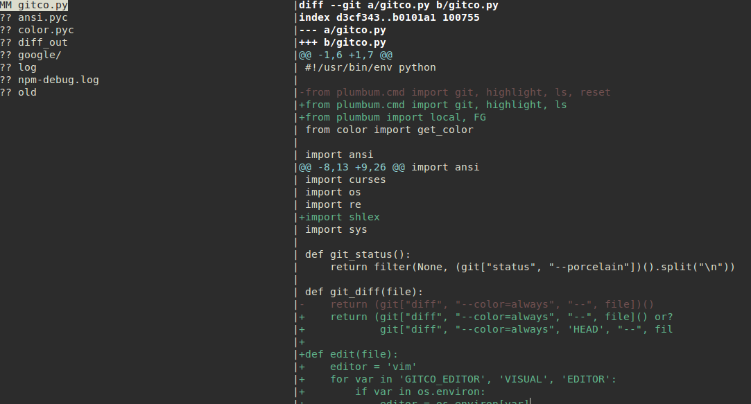 This is an improved version based on curses that will show the diff immediately on the right part of the screen.